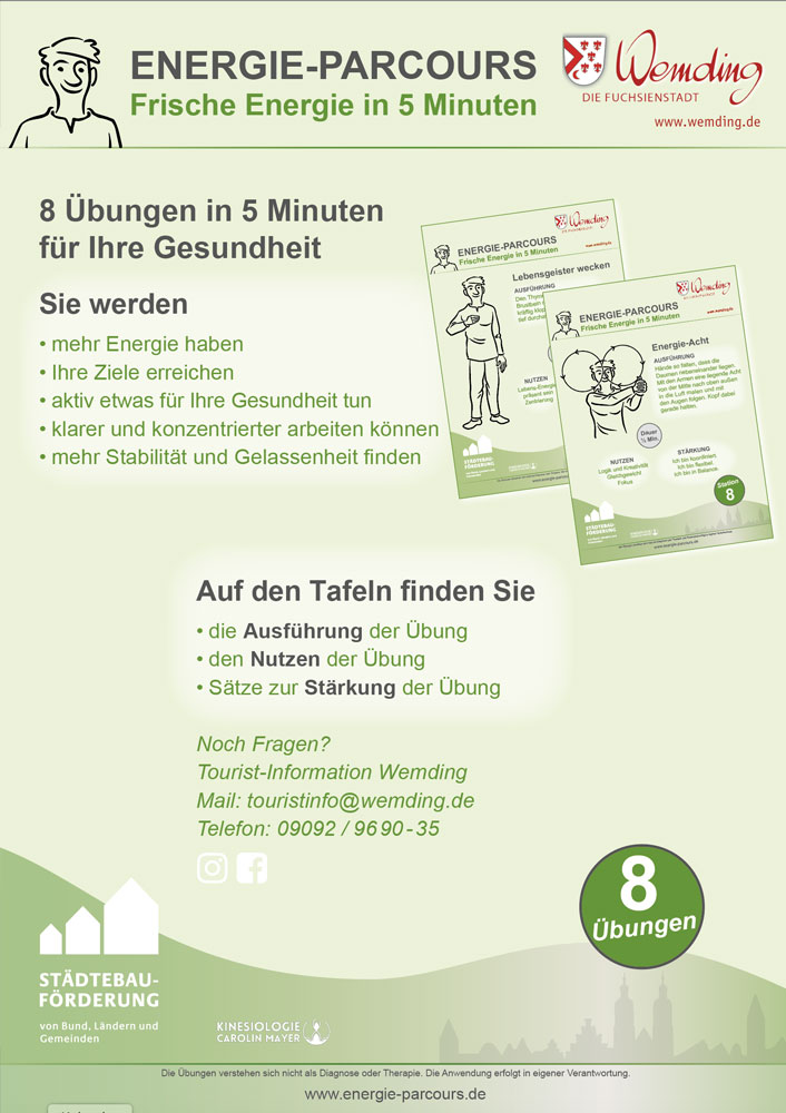 - für regelmäßige Energie-Parcours Gruppenstunden (Seniorenresidenz, VHS, …)